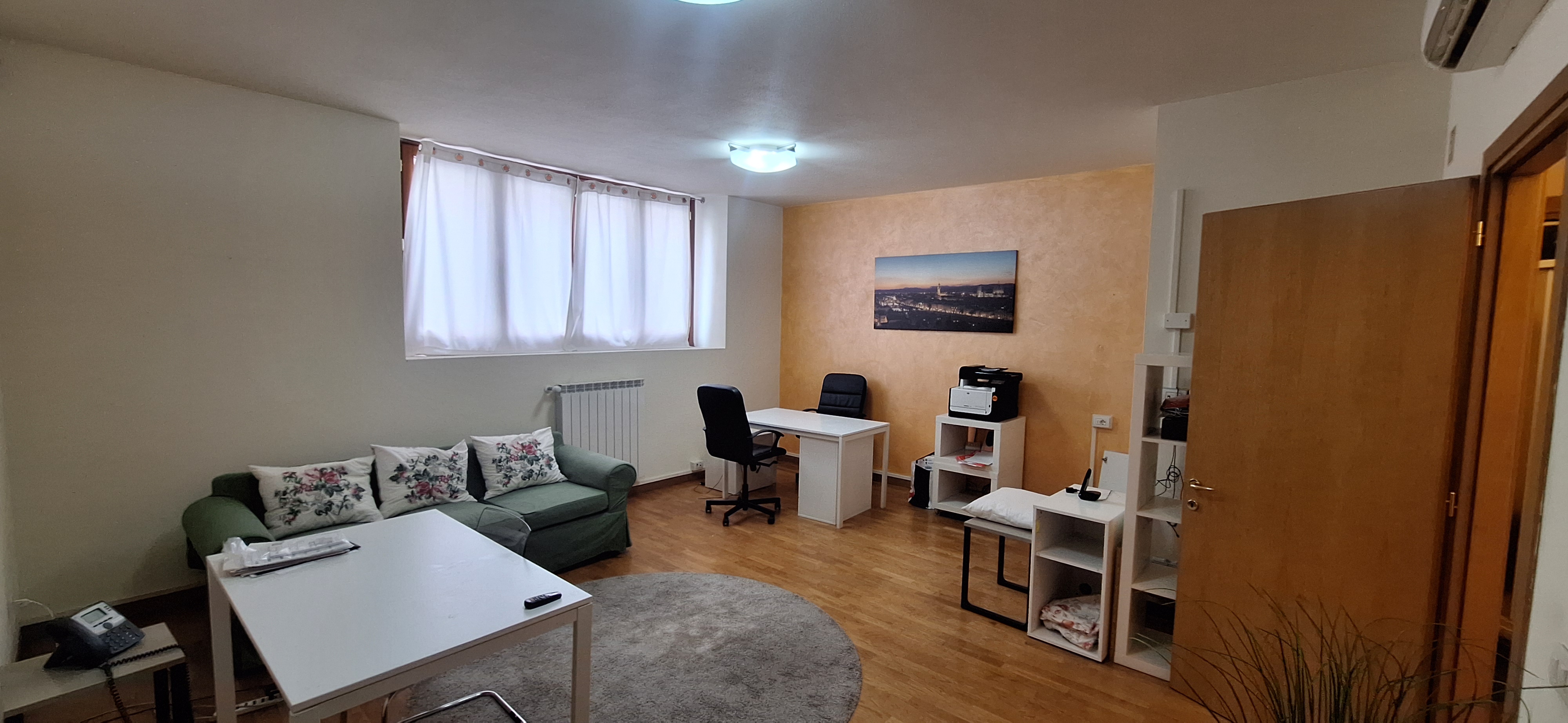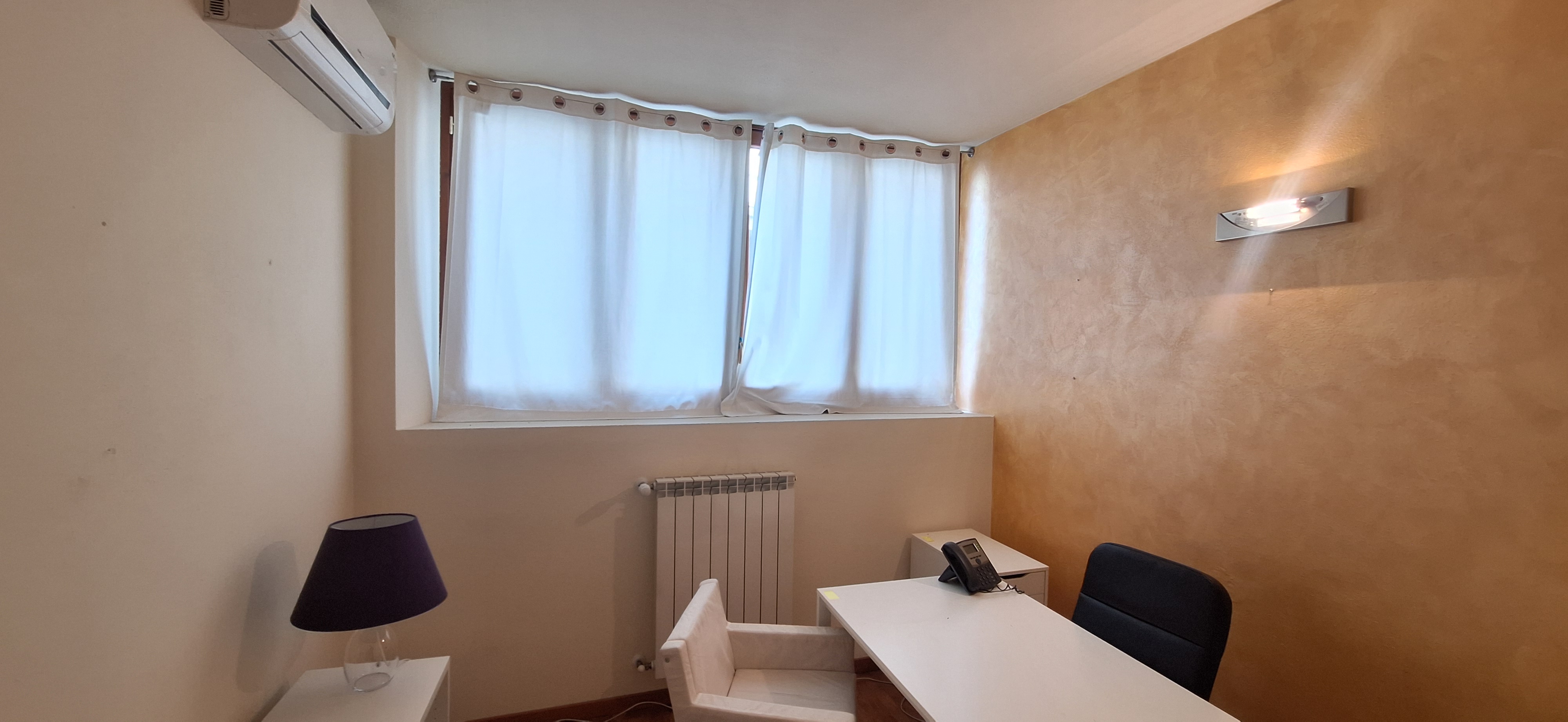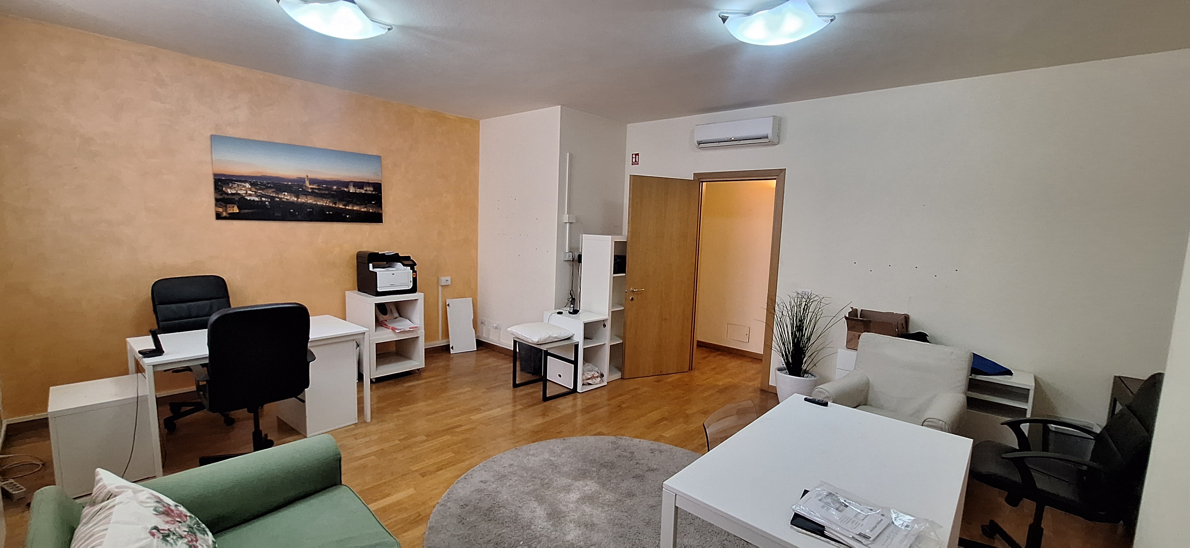 Nelle immediate vicinanze del Piazzale della Porta al Prato e di Viale Belfiore, in elegante palazzina, ufficio al piano terreno, composto da ingresso disimpegno, due vani, corridoio, bagno, un ampio garage (21 mq) con accesso carrabile dalla strada e ingresso dal vano scale a pochi metri dalla porta dell'ufficio. Il garage può essere utilizzato anche come magazzino. Ottime condizioni interne, impianti a norma, riscaldamento singolo, condizionatori, utenze attiva, parzialmente arredato. Canone richiesto oltre IVA.